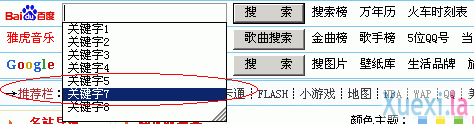 鼠标左键单击搜索空白栏框,弹出所有关键字记录。选择要清除的关键字,按Delete键删除(注:不要按回车键上面的“<—”删除键,用它来删除关键字无效!)。例如:笔者要删除“关键字6”,将鼠标指针移到“关键字6”(不要点击鼠标),当“关键字6”显示为蓝底颜色时,按下Delete键进行删除。