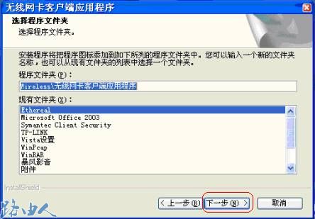 (3)点击下一步继续,安装程序提示您选择安装路径,默认安装路径为“C:\Program Files\Wireless\无线网卡客户端应用程序,如果您想改变安装路径请点击浏览选择路径,我们建议您保持默认路径,点击下一步;