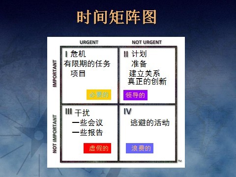 每个人,每天要做的事情大致分为四类:一类:必须做的,不做会产生不良后果的