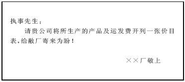 外贸书信是同外国人及有关方面进行经济贸易或业务往来的专用信函,大致包括如下一些方面: