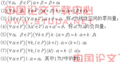 在郭聿琦等主编的《线性代数带引》,或者说任何一本代数学教材,在定义线性空间时均采用了如下的八大公理: